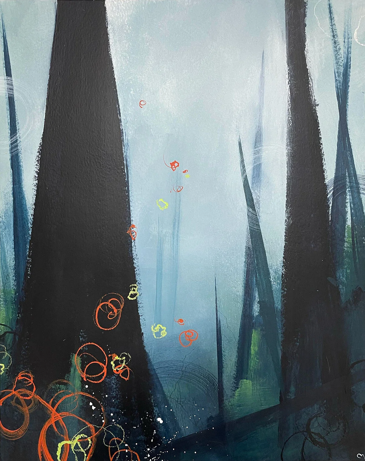 Like the work in “Halls of Mountains” I sought to show the “hidden channels” of information and energy that I feel walking through these forests and trails, but with a focus on color that both represented and exaggerated the PNW color scheme.
